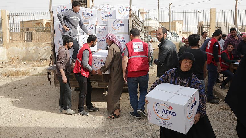 Turkey’s Disaster and Emergency Management Authority (AFAD) and the Turkish Red Crescent (Kizilay) both participated in the distribution of food aid to struggling families in the cities of Al-Bab and Qabasin in the Aleppo province.