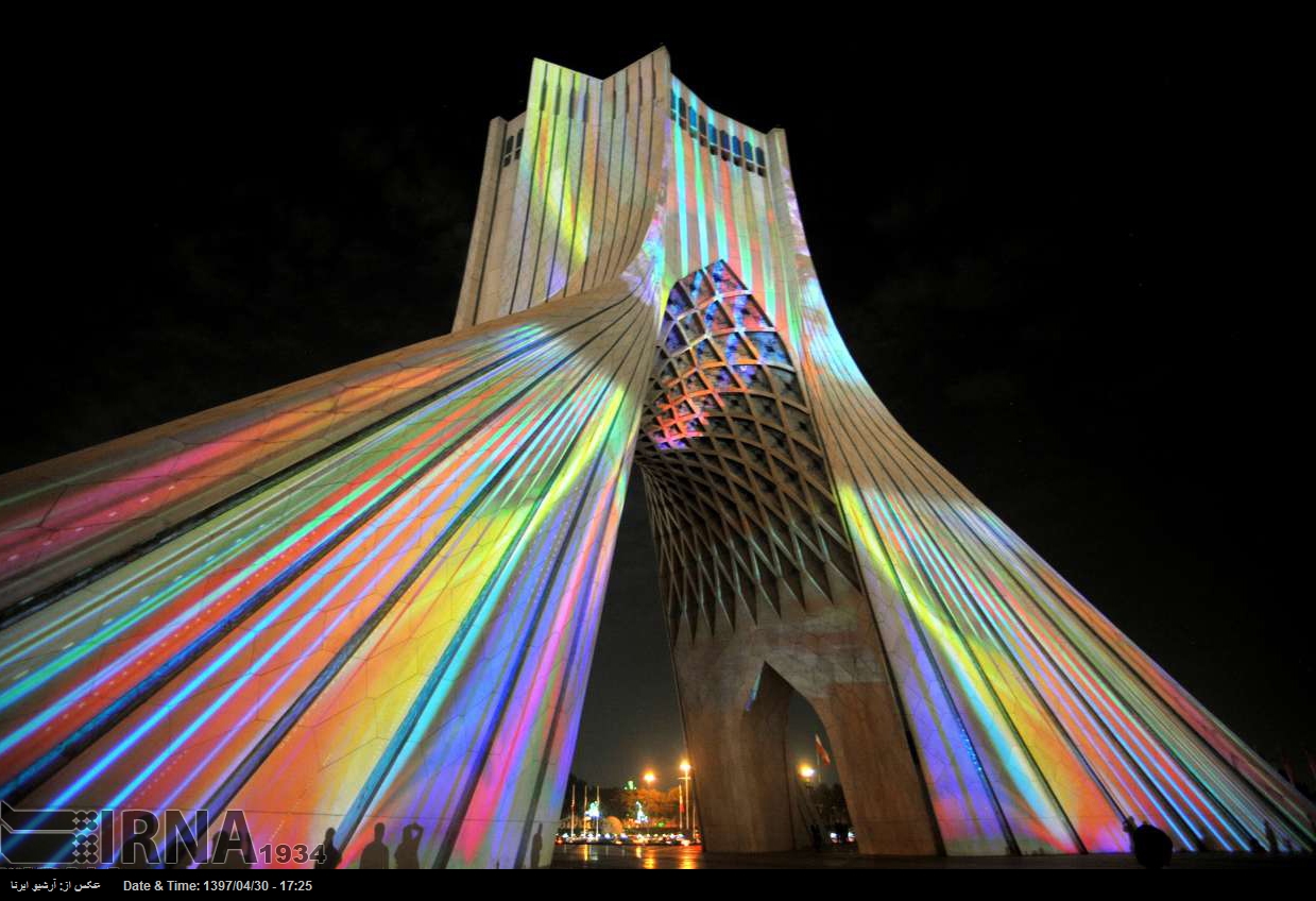 The iconic Azadi Tower in southwest Tehran is being screened for a projection mapping created by French composer, conductor, multimedia artist and researcher Stéphane de Gérando on July 19, 2018.