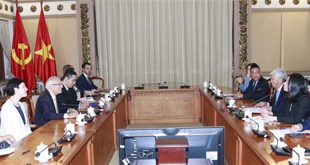 HCM City, October 12 (VNA) – Vice Chairman of the Ho Chi Minh City People’s Committee Vo Van Hoan and Minister of Economic Development, Job Creation and Trade of the province of Ontario in Canada Vic Fedeli discussed ways to push forward bilateral ties in the near future during a reception in the city on October 11. Hoan hailed the Canadian delegation’s visit which takes place at a time when Vietnam and Canada are witnessing positive developments in their ties, especially in trade and investment. He said Ontario could cooperate with Ho Chi Minh City in wood production and processing, pharmaceuticals and vaccine production. Ho Chi Minh City wishes to acquire experience or direct investment from Ontario firms in the fields of information technology, artificial intelligence and digital transformation, he said. HCM City, Canadian province of Ontario push forward ties hinh anh 2 Vice Chairman of the Ho Chi Minh City People’s Committee Vo Van Hoan (sixth from right) and Minister of Economic Development, Job Creation and Trade of Ontario Vic Fedeli (fifth from left) (Photo: VNA) Fedeli, for his part, said the visit demonstrates the Ontario administration's interest in Ho Chi Minh City and highlights the positive developments of ties between the two countries. He said the community of Vietnamese Canadians, just over 150,000 in Ontario and over 275,000 in Canada, serve as a friendship bridge and a driving force to step up bilateral cooperation. Sharing local strengths and potential, he said Ontario is keen on partnering with Ho Chi Minh City in vaccine research and production, water treatment, green energy development and trade. Ontario is ready to deepen the government-to-government, business-to-business and people-to-people relationship between the two localities, he said./.