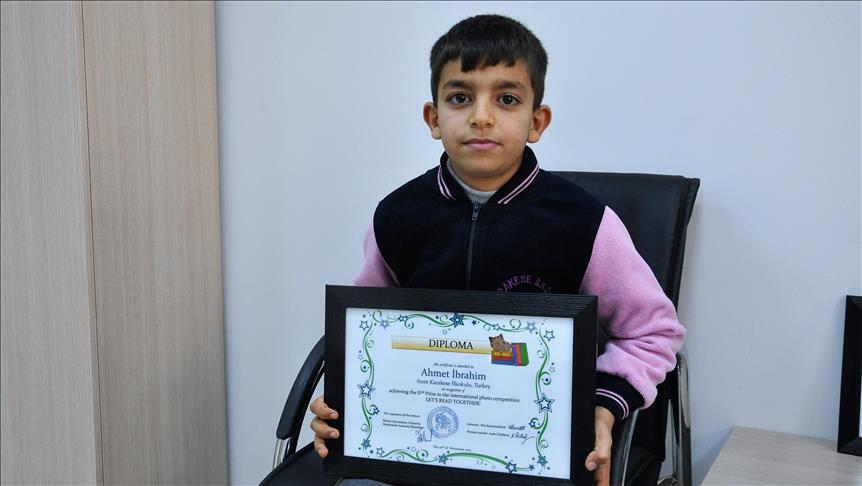 A 9-year old Syrian refugee boy, Ahmed Ibrahim, living in Turkey's southeastern province of Hatay, came second in an international photo competition called "Let's Read Together” held in Lithuania.