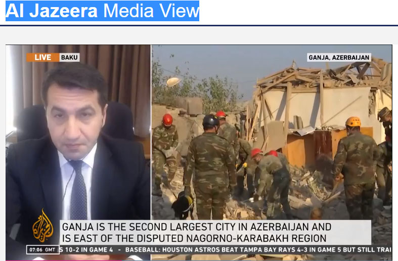 Assistant to the President of Azerbaijan, Head of Foreign Policy Affairs Department of the Presidential Administration Hikmat Hajiyev has been interviewed by Al Jazeera TV channel on Armenia’s latest provocations against Azerbaijan and the missile attacks on the country’s second largest city of Ganja.