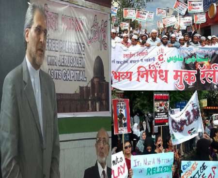 New Delhi, July 27, IRNA – Terming Gaza as the largest prison on this earth, an Iranian Diplomat in Mumbai said that Israel is committing barbarism by killing innocents and even bombarding hospitals and relief camps. Addressing a meet, organized by Jamaat-e-Islami Hind, Maharashtra Branch, on International Quds Day, Masood Khaliqi, Consulate General of Iran in Mumbai said that Iran has announced it is ready to take the responsibility of wounded Palestinians and treat them in their hospital. Iran is not allowed to bring back the injured civilians for the treatment even the aid is not allowed to send, he said, while condemning the killing of innocent civilians by Israel, the TCN reported. He also regretted the silence of the Muslim World on the issue, and urged for unity among Muslim nations. Jamaate Islami Hind and Students Islamic Organization (SIO) - the SIO commemorated the Quds day all over Maharashtra, including Jalna, Parbhani, Aurangabad, Mumbai, Thane, Pune, Latur, etc, by holding agitation March and signature campaign. The protesters urged that Israel may be declared a ‘rogue’ state and that all Israeli made products should be boycotted. According to an expert, the death and destruction caused by Israel’s onslaught in Gaza is a clear-cut crime against humanity. The reported statements emerged from White House by the US administration during the conflict, proves that the self-styled champion of human rights has supported Israel in violation of human rights”. Expressing outrage over Israeli act of genocide and extending solidarity with the Palestinians, he castigated the World body and said that whatsoever the world is witnessing, in this tiny strip of Gaza, is the result of the silence of the UN, which has become an impotent tool in tackling the issues concerning with the Muslim world. He said that Israel’s despicable act of butchering innocent Palestinian people, including women and children is not new. They are facing it since 1967. The UN instead of despising it, mutely watching. The deliberate silence of the UN for the Palestinian cause is more condemnable. The International Quds Day, which was designated with the last Friday of Ramazan by the founder of the Islamic Republic of Iran in 1979, was observed across India with socio-religious fervor. Tens of Thousands of concerned and aware citizens of India along with their Muslim brethren marked protest against the illegal occupation of Al-Aqsa Mosque, a highly religious place for the Muslims across the globe, from where Holy Prophet Muhammad (PBUH) ascended to heavens, by the Israeli Regime. And also strongly condemn the continued Israeli aggression against Palestinian people. Chanting slogans, carrying banners against Zionism and imperialism, Muslims along with all peace-loving people together regardless of their race, religion or sect in of Delhi, Bangalore, Hyderabad, Kashmir, Bhopal and Maharashtra, drawn attention of the world people to the continued illegal occupation of Al-Aqsa Mosque, as well as the Israeli aggression on innocent Palestinians. Their acts invited more and more people, to join and stand up against the injustices being perpetrated across the globe by the oppressors, and to raise the voice against Zionism and imperialism. In light of latest defiant Israeli genocide in Gaza for the last 18 days, that has killed more than 800 Palestinians, including women, children and elderly and more than 118,000 people are now sheltering in UN schools and people are running out of food, this year’s Int’l Quds Day had attained added significance. In national capital Delhi under the banner of Majlis Ulema-e-Hind, National Council of Shia Ulemas and several other Muslim organizations, a massive protest was held at Jantar Mantar in Central Delhi. The protestors were addressed by the religious scholars, academicians and MPs. They in one voice condemned the Israeli Regime’s illegal occupation of Al-Aqsa Mosque and continued Israeli aggression in Gaza. They in one voice said that their protest was ˈnot only for Muslims killed in Gaza but also against the cruel forces which are oppressing and using the oil-producing Arab countries. In his address Maulana Syed Jalal Haider Naqvi said: “We demand that the Indian government change its foreign policy. We want the new government to fight for the rights of Palestinians and boycott relations with Israel”. Later-on a memorandum was presented to the Prime Minister of India and UN. The memorandum read: The innocent people are being butchered. Women, children and elderly were being mercilessly killed. What is going on is a flagrant violation of international laws. It is surprising that though the world has become aware of the genocide being carried out by Israeli forces all the countries of the world remain mute spectators to the barbaric acts. At this situation, we have put forth our core issues and concerns in this memorandum, which are as follows: Israeli regime should be pressurize to obey international laws and should vacate the sacred monument; stop Israel from the acts of demolishing Palestinian homes and evicting forcefully the Arab inhabitants of Al-Quds; strongly condemn the Israeli aggression against Palestinian people; take steps for a democratic and peaceful way of resolving the conflict; support the people of Palestine in their struggle for self determination and self defense; condemn the western nations who support the Palestinian genocide./end