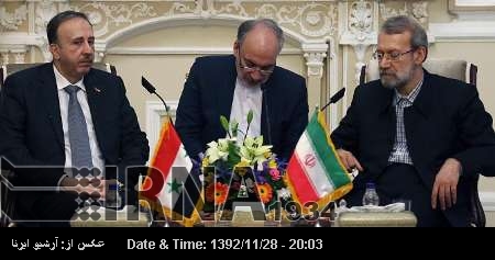 Tehran, Feb 18, IRNA – Majlis Speaker Ali Larijani said in Tehran on Monday that the Iranian government and nation will continue supporting Syria. Larijani further told Speaker of Syrian Peopleˈs Assembly, Mohammad Jihad al-Laham that steadfastness of the Syrian government and nation against crisis, created by world powers and their allies, is praiseworthy. ˈThe prospect of Syrian developments is bright thanks to the resistance and wise guidelines of the Syrian government and nation.ˈ He hoped that the 9th meeting of Parliamentary Union of the Organization of Islamic Cooperation (OIC) will help bolster unity and solidarity among Muslim states. The Syrian speaker, in turn, thanked Iran for helping consolidate solidarity among Muslim states and settle their problems. He also thanked Iran for supporting the Syrian people in the ongoing crisis./end