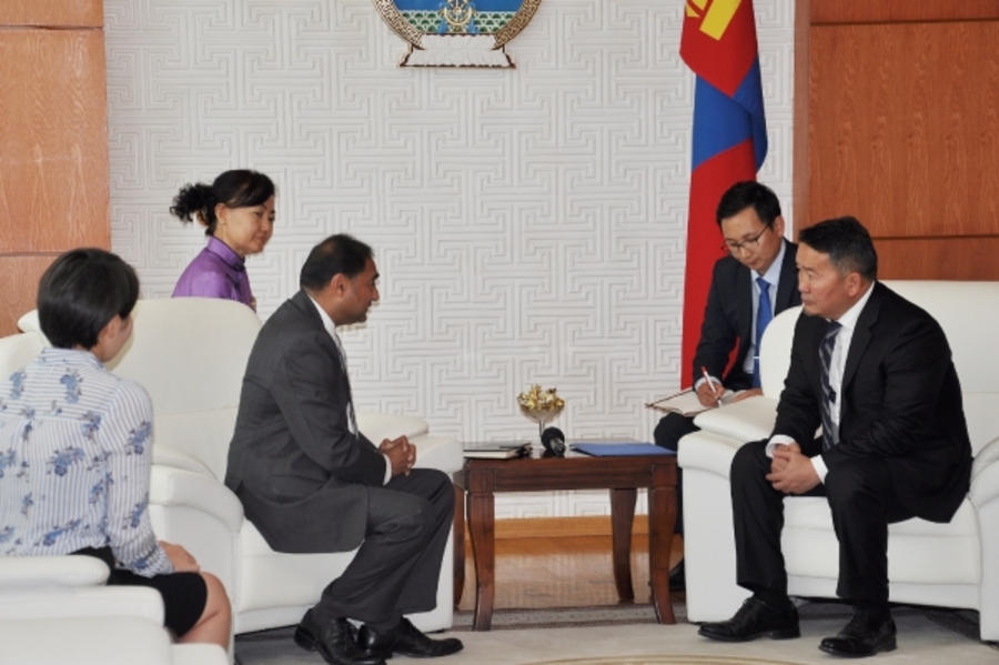 Ulaanbaatar /MONTSAME/ President Kh.Battulga met Adnan Rauf Quereshi, Officer-in-charge of the United Nations Food and Agriculture Organization Office in Mongolia on August 3. Mr. Quereshi touched upon the FAO operations in Mongolia which emphasize on improving the livelihood of herding households and food quality. President Kh.Battulga expressed his intention to strengthen cooperation with the FAO, citing the importance of economic system that facilitates purchase of animal-origin products from herders and export of value-added goods. He also spoke of possibilities of cooperating with the UN and Red Cross Society in humanitarian area, and supply food and meat. He said, “Mongolia can work with the Red Cross Society, instead of only receiving aid”, mentioning how Mongolia can be a part of humanitarian works through food supply. Kh.Aminaa
