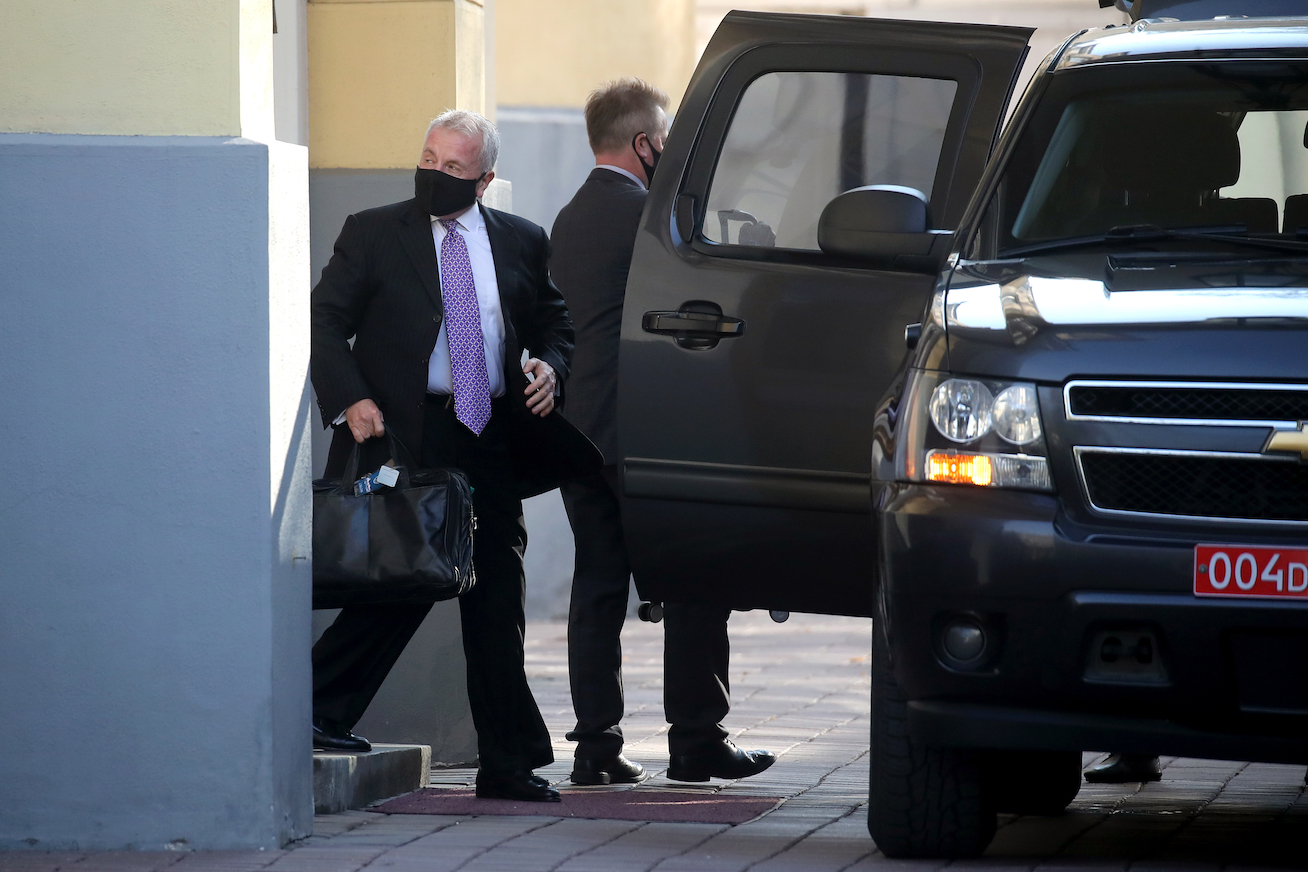 US ambassador to Russia leaves his residence, presumably heading to airport