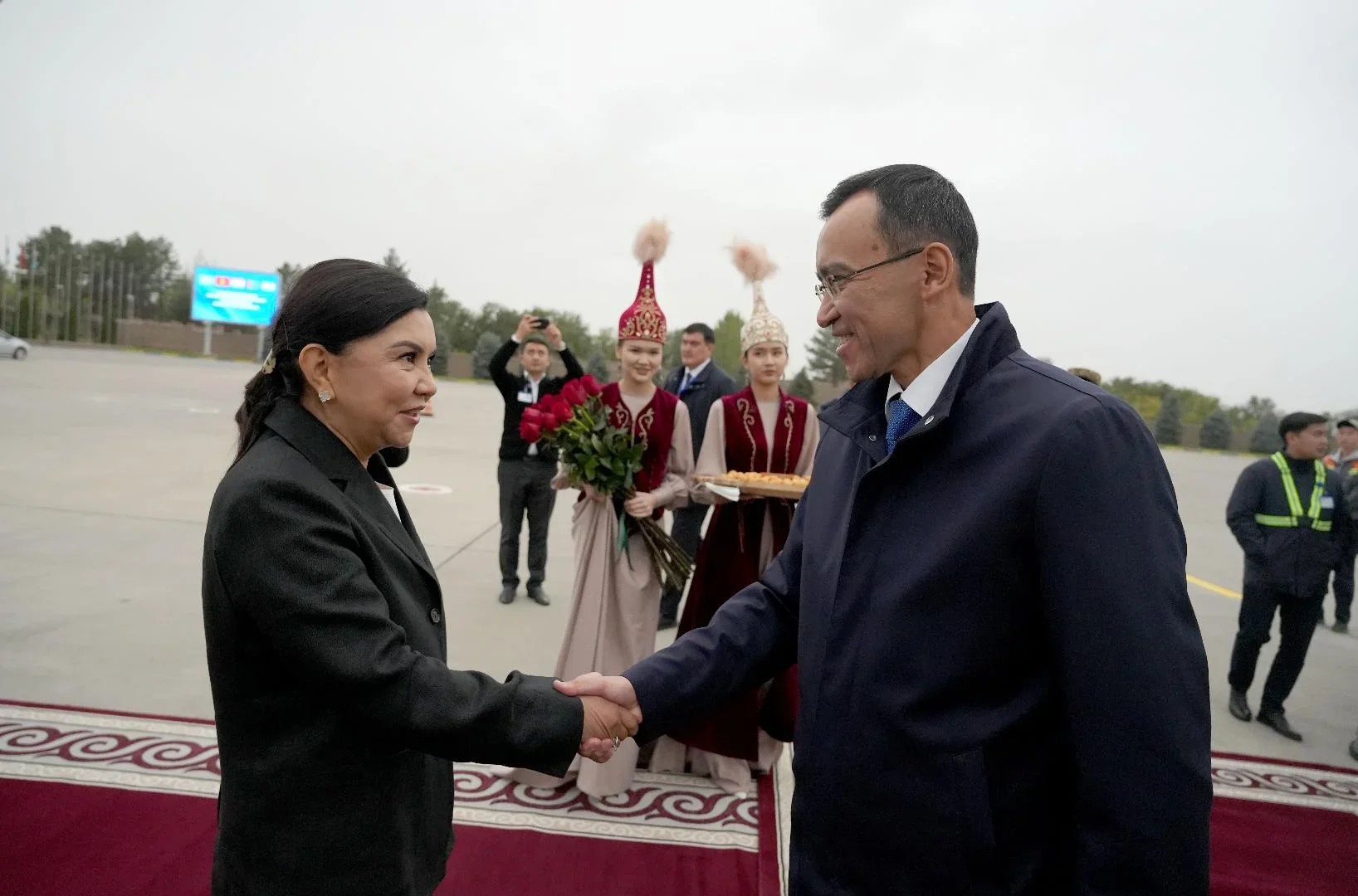At the Manas International Airport, the distinguished guests were met by Zhyldyz Sadyrbaeva, Deputy Speaker of the Jogorku Kenesh.