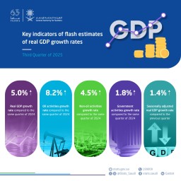 Riyadh, October 30, 2025, SPA -- The General Authority for Statistics (GASTAT) today released its flash estimates for the Kingdom's real GDP for the third quarter of 2025, showing robust expansion.
