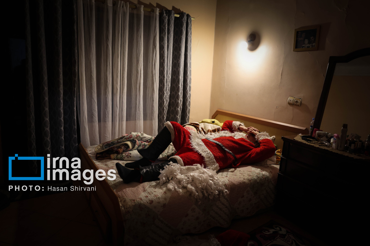 Vanik Ghutoyan, 41, began his work as Santa Claus on Tehran’s Mirzaye Shirazi Street during Christmas 2005 and has since trained eight people for the role. This photo report captures Vanik’s journey from his home as he prepares to take on the role of Santa Claus, to his presence on the street and his interactions with children and passersby in the days leading up to Christmas.