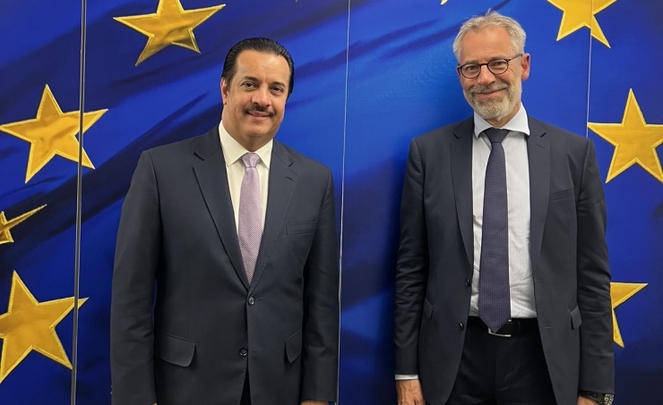 Brussels, Nov. 14 (BNA): Abdullah bin Faisal bin Jabr Al Dosari, Ambassador of Bahrain to Belgium and the European Union, met with Michael Hager, Director of the Council of the European Commissioner for Trade.