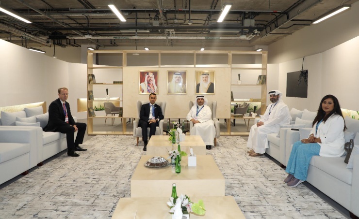 Dubai, Dec. 2 (BNA): Dr. Mohammed bin Mubarak bin Daina, Oil and Environment Affairs Minister, Special Envoy for Climate Affairs, received Luigi Di Maio as EU Special Representative (EUSR) for the Gulf Region, on the sidelines of the 28th session of the Conference of the Parties to the UN Framework Convention on Climate Change (COP28), hosted by Dubai, the United Arab Emirates.