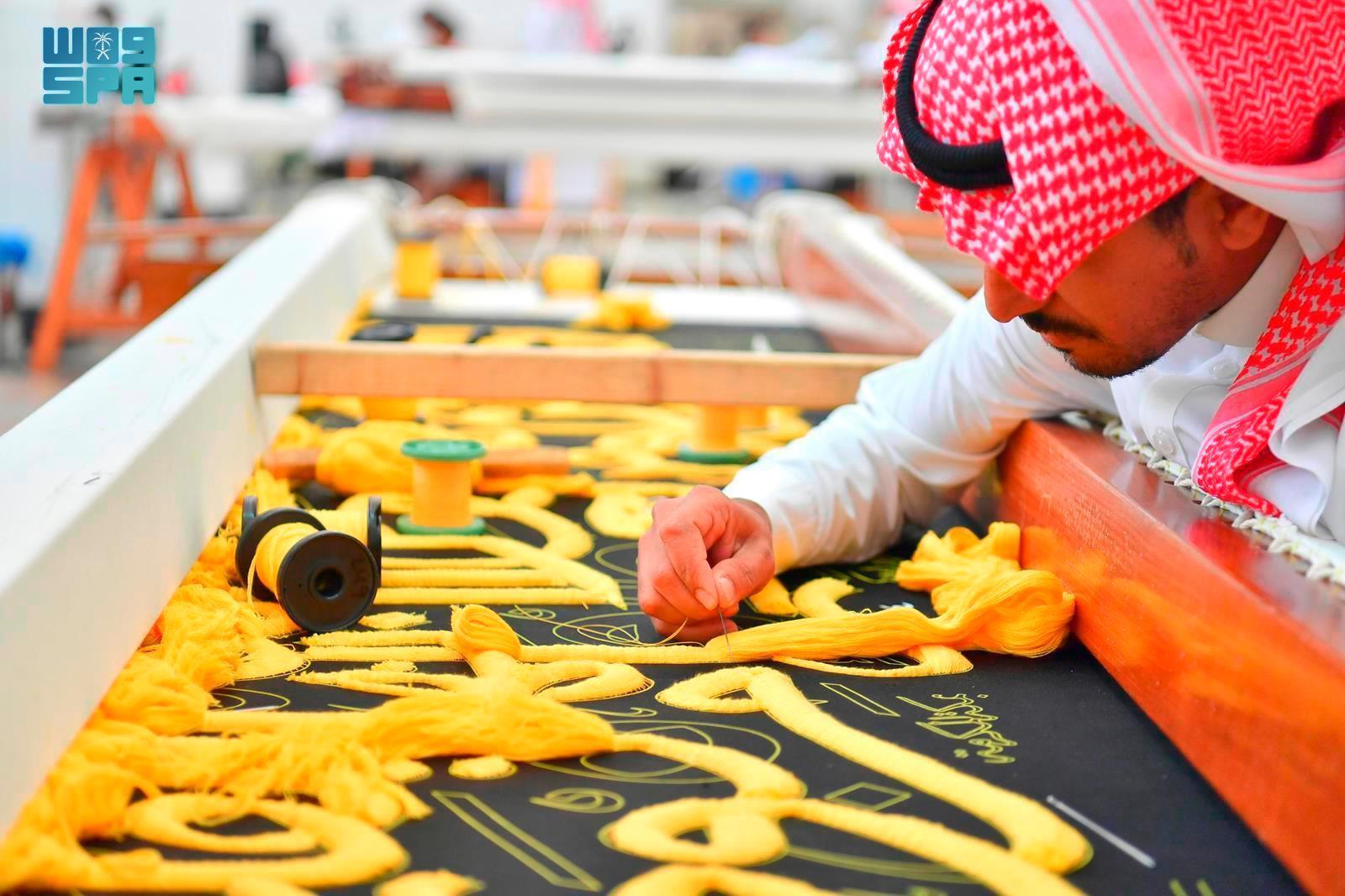 Makkah, July 07, 2024, SPA -- With exceptional skills and deft hands, a group of youth masterfully weaves the cover "Kiswa" of the holy Kaaba using threads of silk, silver, and gold. They work through several stages to craft the Kiswa of the holy Kaaba.