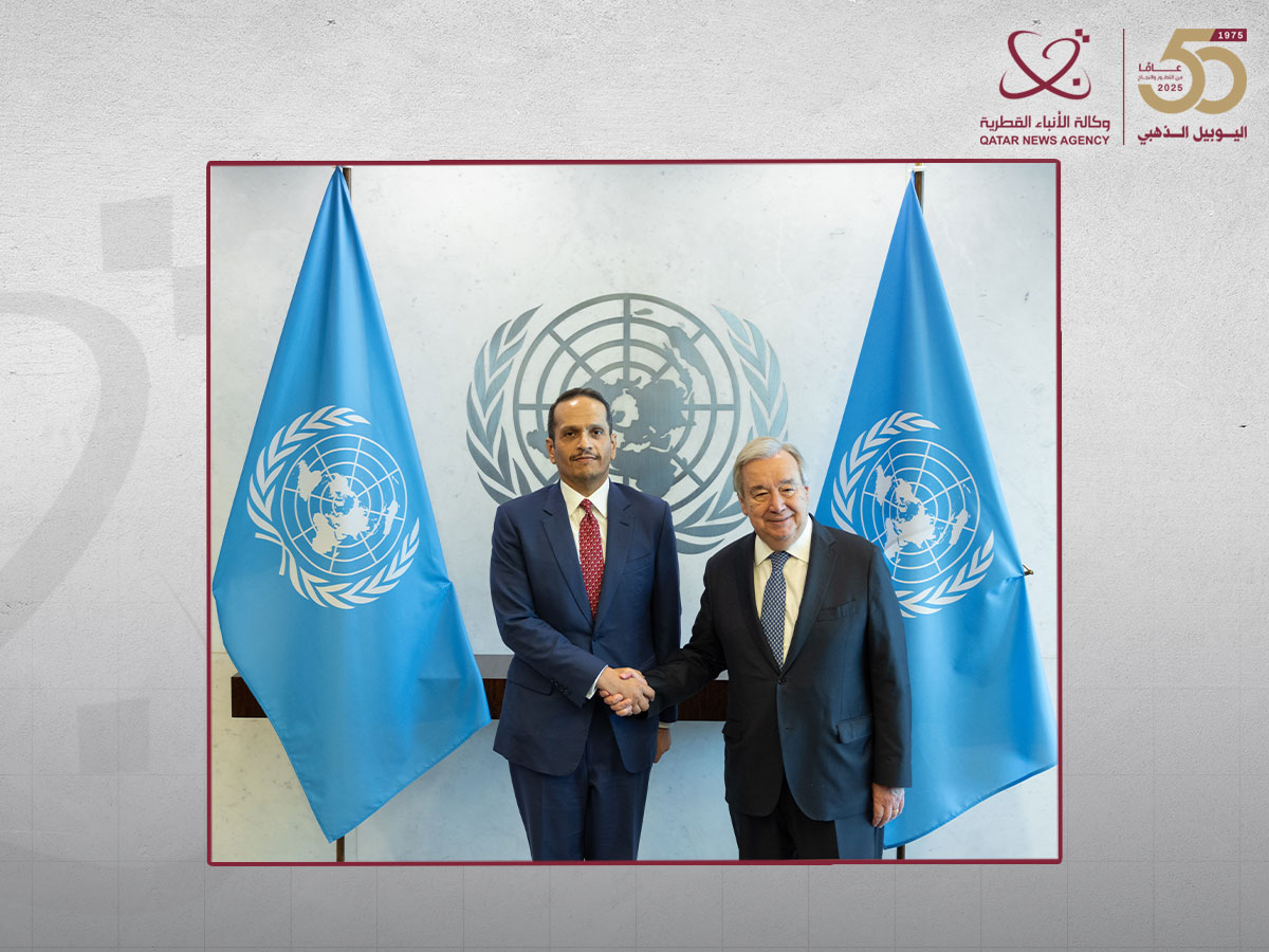 New York, July 29 (QNA) - HE Prime Minister and Minister of Foreign Affairs Sheikh Mohammed bin Abdulrahman bin Jassim Al-Thani met Tuesday with HE Secretary-General of the United Nations Antonio Guterres, on the sidelines of the International Conference for the Peaceful Settlement of the Question of Palestine and the Implementation of the Two-State Solution, held in New York.