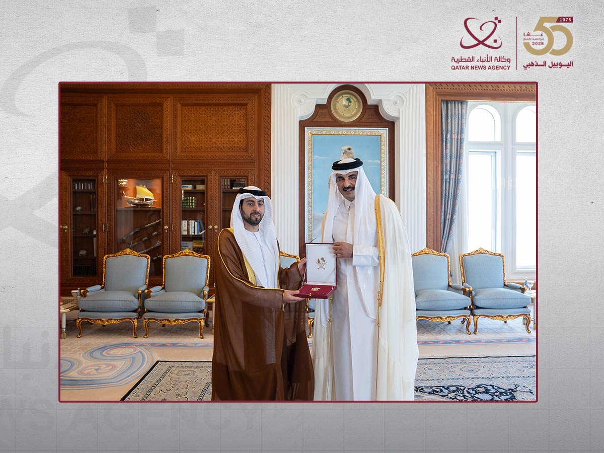 HH the Amir granted Al Wajbah Decoration to the Ambassador of the UAE in recognition of his role in contributing to the enhancement of bilateral relations between the State of Qatar and the UAE, wishing him success in his future missions, and the relations between the two countries further development and progress.