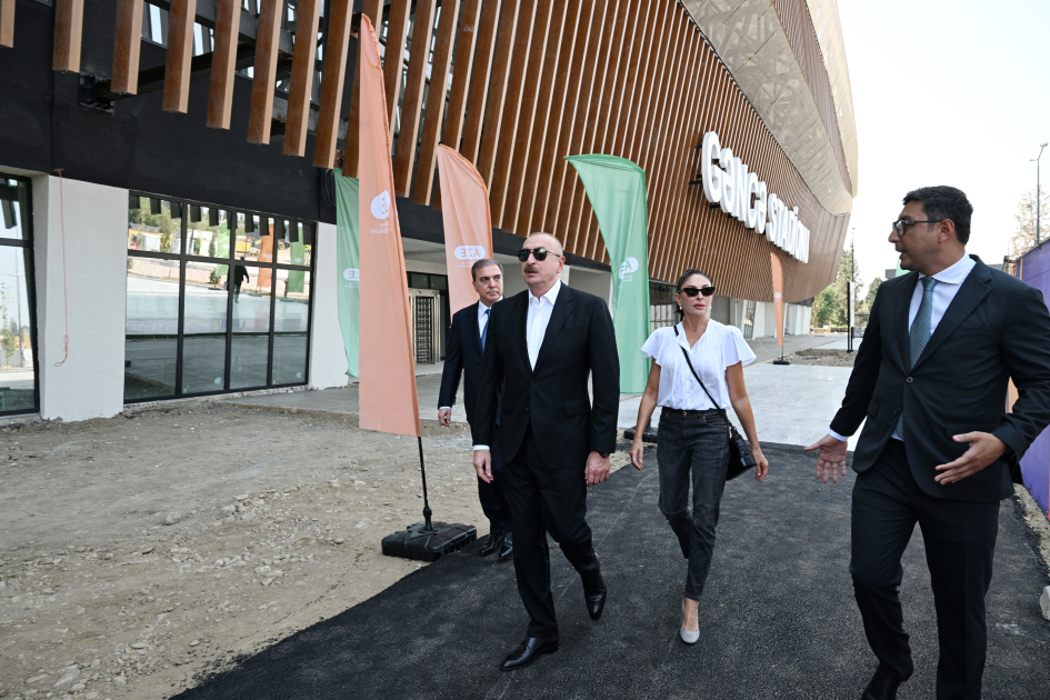 President Ilham Aliyev and First Lady Mehriban Aliyeva inspected construction progress at Ganja city stadium