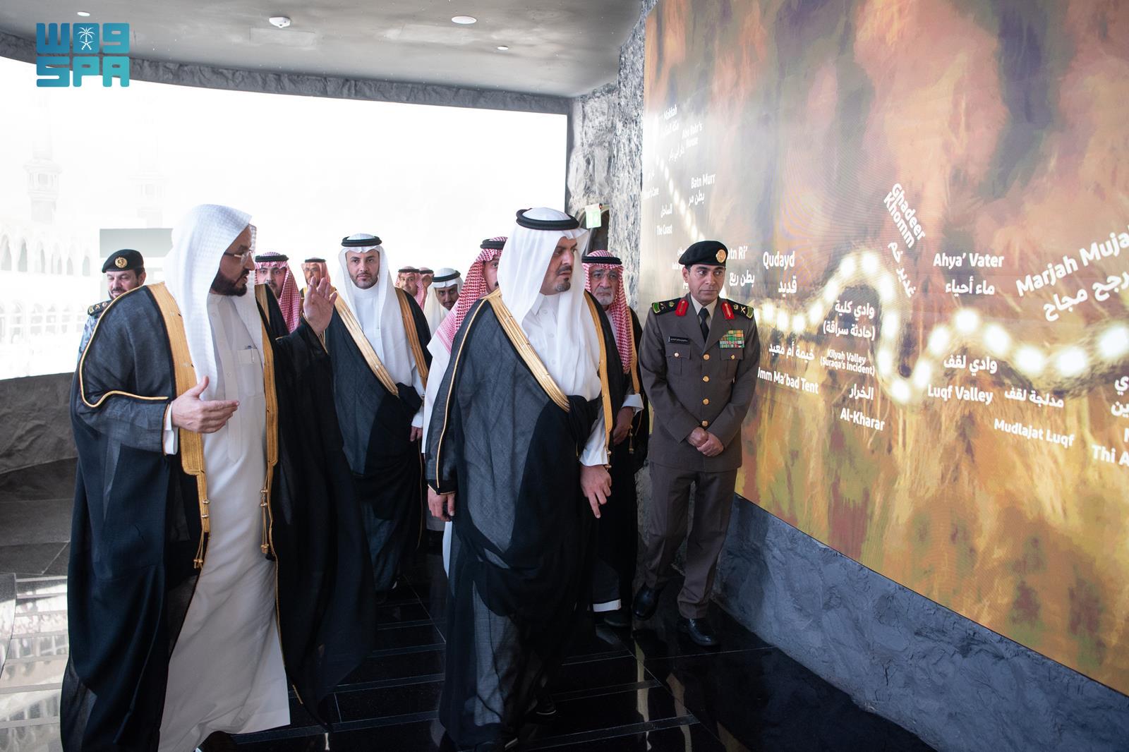 Prince Saud viewed the diverse pavilions and exhibitions that offer visitors a comprehensive educational and interactive experience on the life of Prophet Muhammad (peace be upon him) and Islamic civilization, utilizing the latest visual and digital technologies.