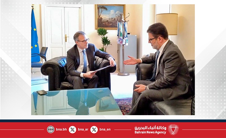 The message was received by Fabrizio Saggio, Diplomatic Adviser to the Italian Prime Minister, during his meeting today with Osama Abdullah Al Absi, Ambassador of the Kingdom of Bahrain to the Italian Republic.