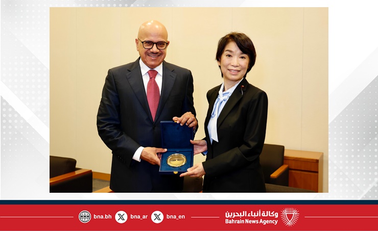 Ahmed Mohammed Al Doseri, Ambassador of the Kingdom of Bahrain to Japan; Khaled Yousef Al Jalahma, Undersecretary for Political Affairs; Saeed Abdulkhaleq, Head of the Coordination and Followeup Sector; and Muneera Noufal Al Doseri, Head of the Asian and Pacific Affairs Sector, were present.