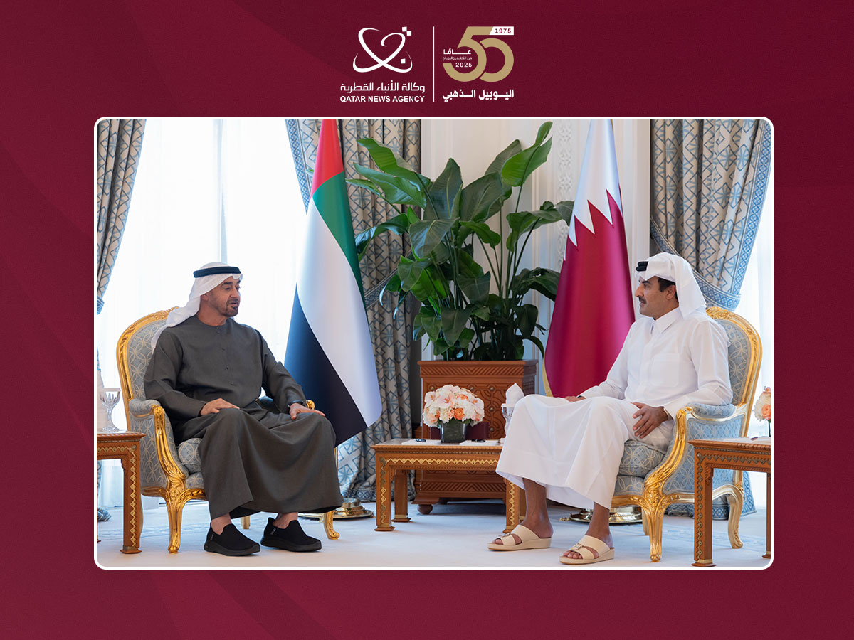 At the outset of the meeting, HH the Amir welcomes HH the President of the UAE and the accompanying delegation, expressing his pleasure with this visit, which reflects the depth of relations between the two fraternal countries.