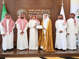 KSrelief Assistant Supervisor General for Administrative and Financial Affairs Dr. Salah Al-Mazrou handed the certificate to Chairman of the Board of Directors of the association Eng. Hamad bin Thawab Al-Khaldi at the KSrelief headquarters in Riyadh.