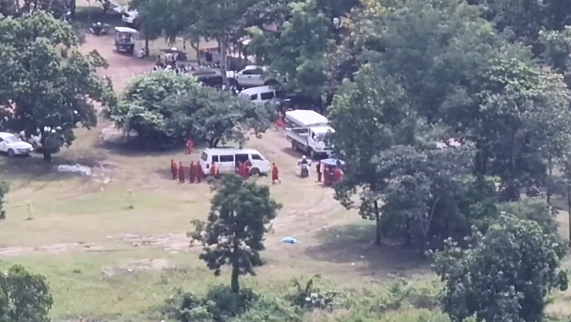 The Burapha Task Force deployed surveillance drones over the Nong Ya Kaew area and detected unusual movement: a large gathering of Cambodian nationals—including military personnel, civilians, and monks—converging near the border fence.