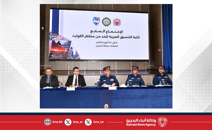 Manama, Oct. 14 (BNA): Lieutenant-General Tariq Hassan Al Hassan, Chief of Public Security, inaugurated the seventh meeting of the Arab Coordination Mechanism for Disaster Risk Reduction, held at the Police Officers Club.
