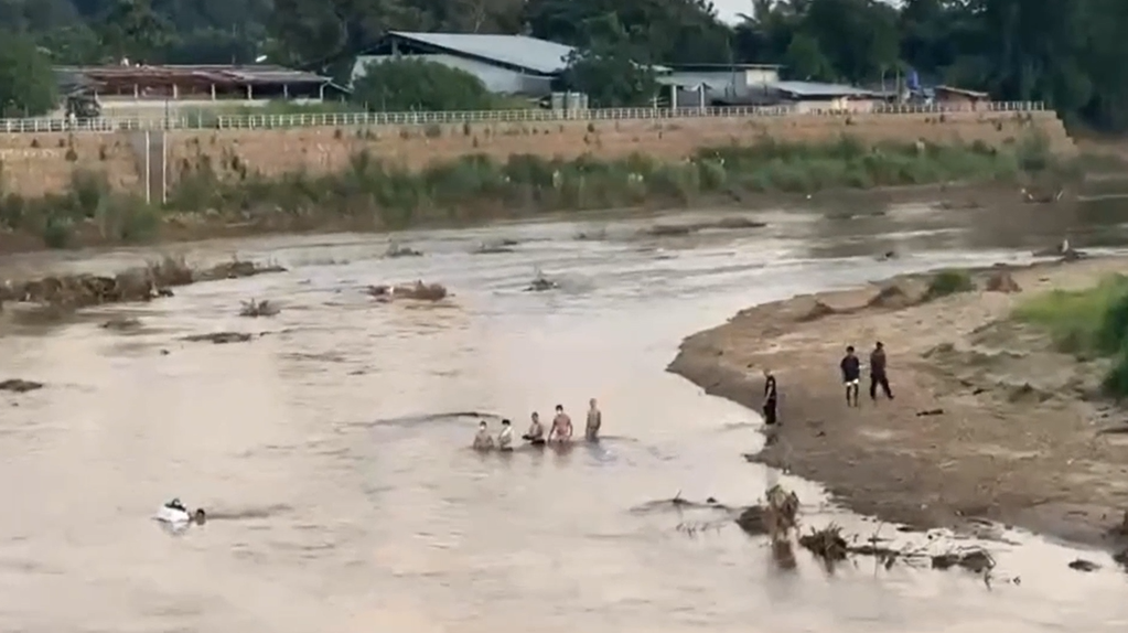 The initial rush saw 202 people, mostly Chinese nationals, swim across the Moei River and surrender to Thai border forces on Thursday.