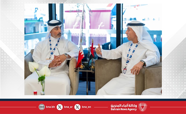 Dubai, Nov. 18 (BNA): Shaikh Khalid bin Ali Al Khalifa, Deputy National Security Advisor, Deputy Secretary General of the Supreme Defence Council (SDC), and Chairman of the Bahrain Space Agency (BSA), met with Ahmad Belhoul Al Falasi, Minister of Sports of the United Arab Emirates (UAE) and Chairman of the Board of Directors of the UAE Space Agency, on the sidelines of Dubai Airshow 2025.