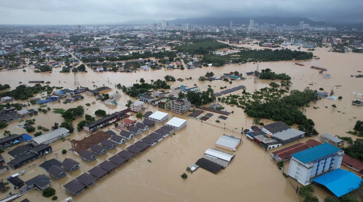 The inner-city area of Hat Yai has been completely cut off, with water levels rising so rapidly that local reports indicate some spots are entirely submerged, reaching above the rooftops of single-story structures. The deluge is a result of sustained local rainfall, compounded by water runoff from nearby mountains and floodwater flowing in from northern districts.