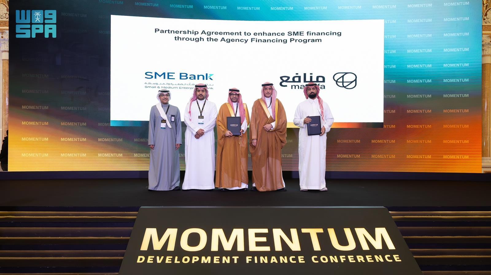 Riyadh, December 11, 2025, SPA -- The Small and Medium Enterprises Bank (SME Bank) signed eight partnership agreements with several financing entities, totaling approximately SAR750 million, during the Development Finance Conference MOMENTUM 2025 held in Riyadh.