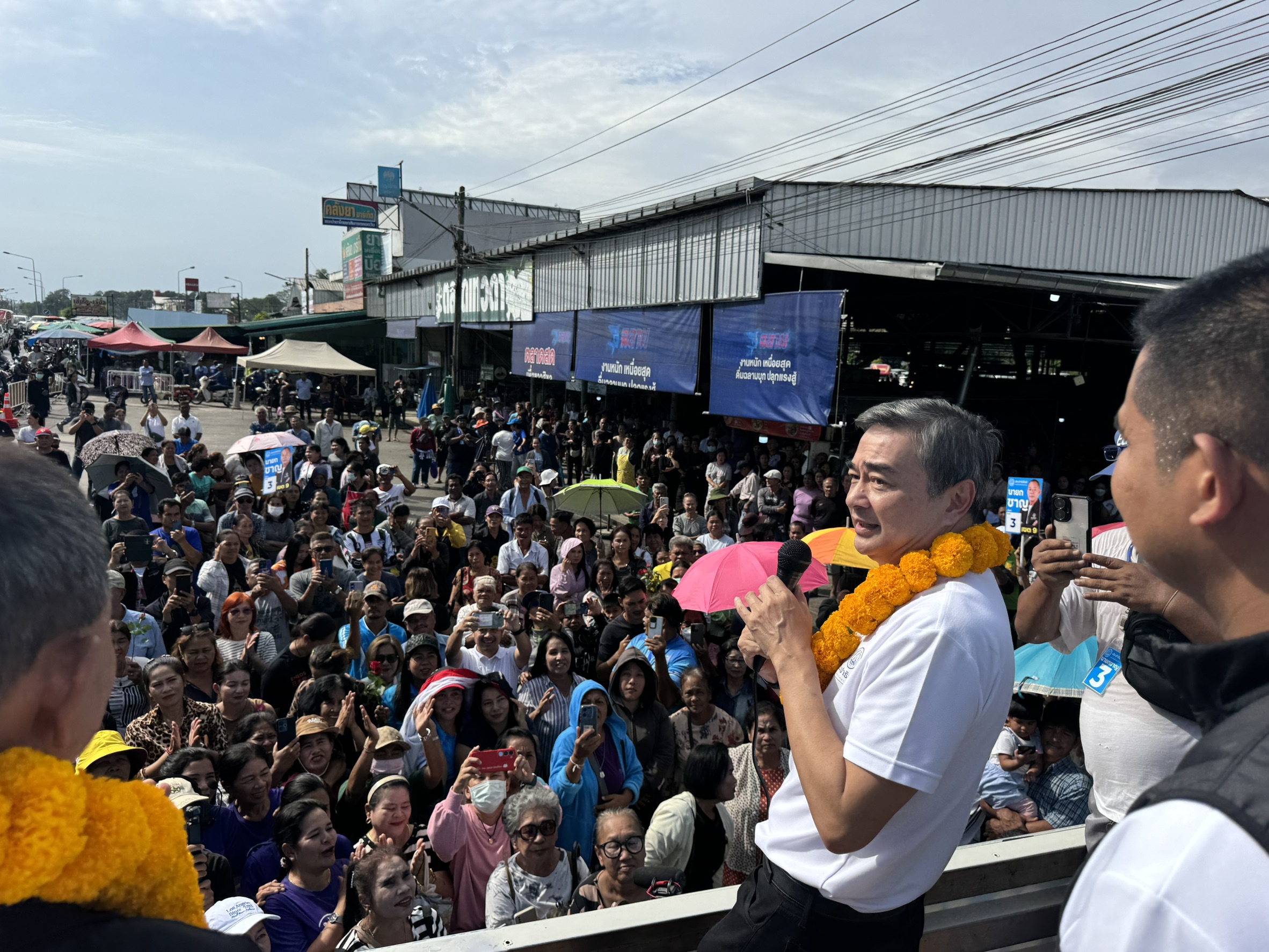 The Democrat Party is also making its move in the south. Leader Abhisit Vejjajiva campaigned in Nakhon Si Thammarat, pitching a 65,000-baht newborn grant and a 100,000-baht savings scheme for children by age 18. He also promised a 1,000-baht universal monthly pension for the elderly.