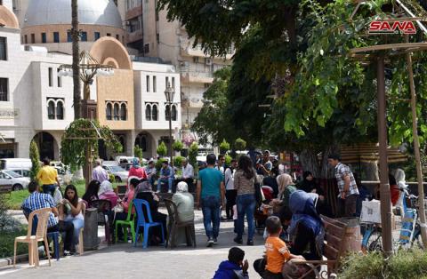 Damascus countryside, SANA-A group of artists took to the trees in their neighborhood’s park in Jaramana city in Damascus countryside, turning logs into fabulous works of art depicting numerous the