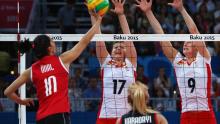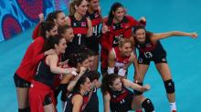 Turkey earned a place in the quarter-finals of the first European Games women's Volleyball tournament as they swept aside Romania 3-0.